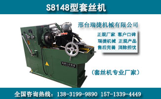 河北省邢臺市瑞捷機械設備公司,創(chuàng)建于2003年,坐落在全國的機械制之鄉(xiāng)-邢家灣工業(yè)區(qū)。本廠專業(yè)制造套絲機,TS80型套絲機,TS64型套絲機,TS50型套絲機,螺栓套絲機,S8139型套絲機,S8148型套絲機圓鋼/圓管套絲機及切線板牙頭等配套產品。